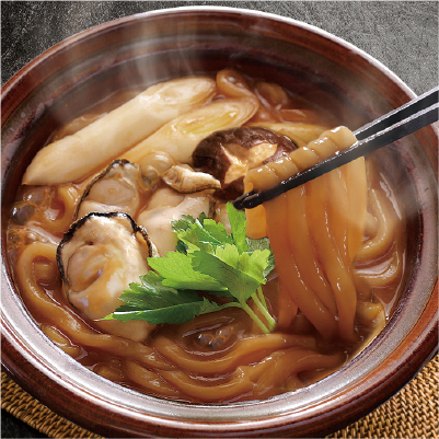 広島の味覚を贅沢に詰め込んだ「贅沢かき入り土手うどん」。