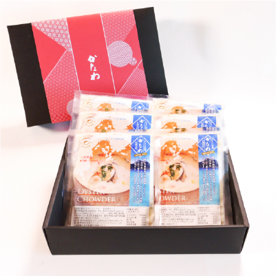 オイスターチャウダーは、かなわオリジナルのギフトBOXに丁寧に詰め合わせ、緩衝材でしっかり保護したうえで、冷凍便対応のギフトBOXにて鮮度と美味しさを守ったまま大切にお届けいたします。