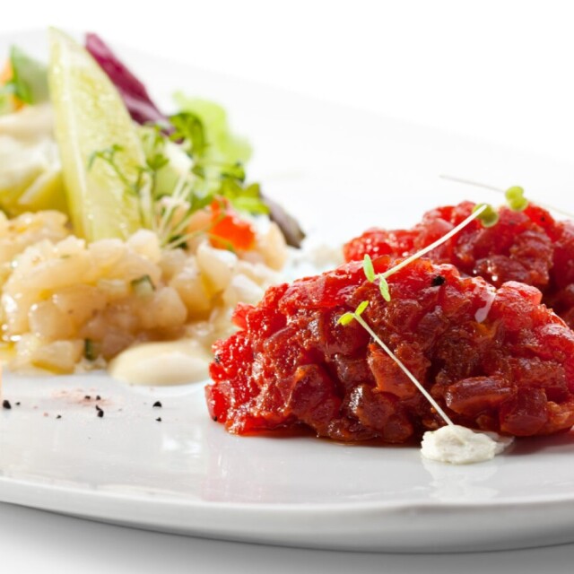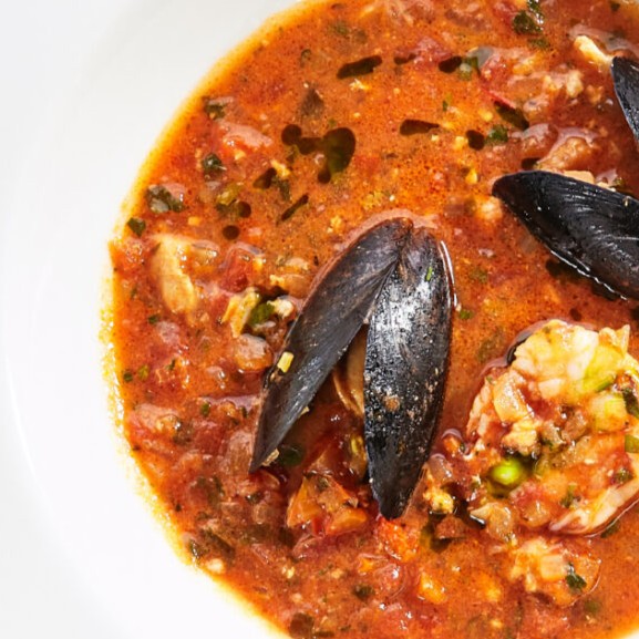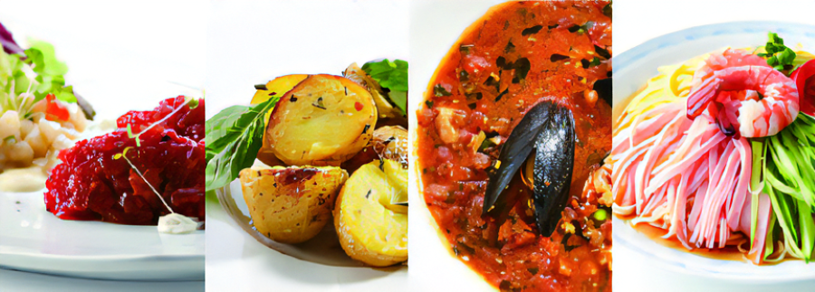 ・マグロのピリ辛ユッケ風、魚介のトマト煮込みに