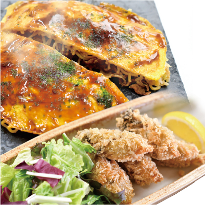 広島の旨みで彩る、贅沢な食卓セット。焼きたて香ばしいお好み焼きとサクサクかきフライで、家族の食卓に笑顔と華やぎを。