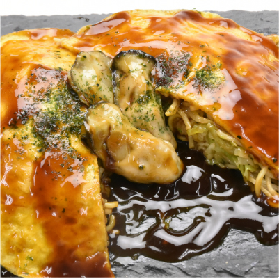 かき入りお好み焼(牡蠣・肉・玉子・そば入り)×2枚